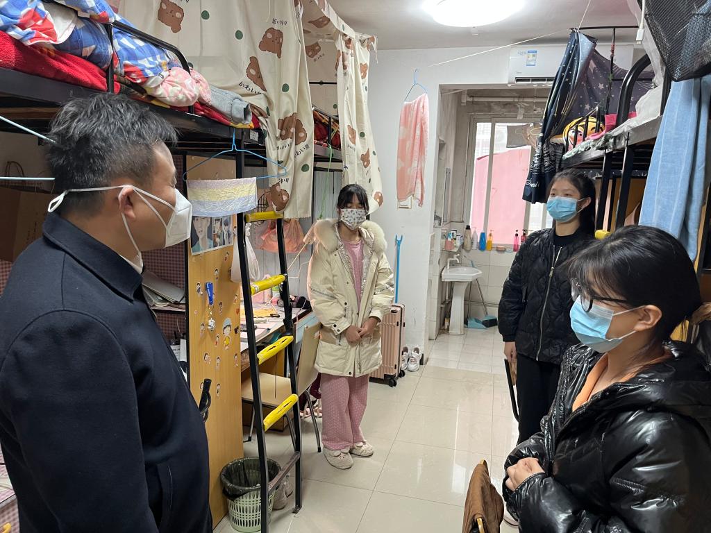 近日,长沙市疫情形势不断变化,为了进一步保障全校师生的健康安全,降低疫情传播风险,我校由线下教学转为线上教学。12月6日下午,学校党委书记龙吟深入联系班级走进物流管理学院卓越2201班的16间学生寝室,对同学们进行关心慰问。学生工作处处长赵建军、物流管理学院党总支书记卜志纯等相关领导老师陪同参加。