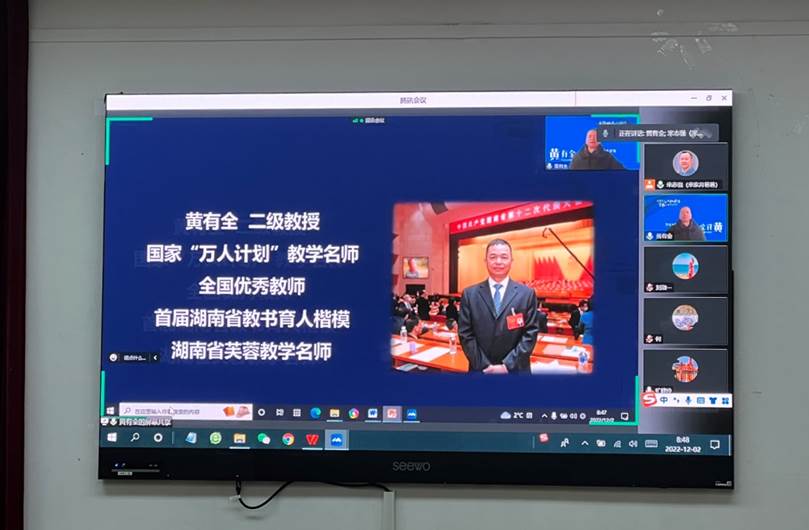 会议第一项,“专家解读国家级教学成果奖文件”。本次邀请的专家是长沙民政职业技术学院二级教授黄有全。黄教授是国家“万人计划”教学名师、全国优秀教师、首届湖南省教学育人楷模、湖南省芙蓉教学名师,他在申报国家级、省级教学成果奖方面有丰富的经验和深刻的体会。在会议中,黄教授从两大方面即“国家教学成果奖通知解读“”教学成果奖培育“给各位老师作了分享,在短短的四十分钟里,黄教授抓住文件精髓进行解读,逻辑清晰,重点突出。