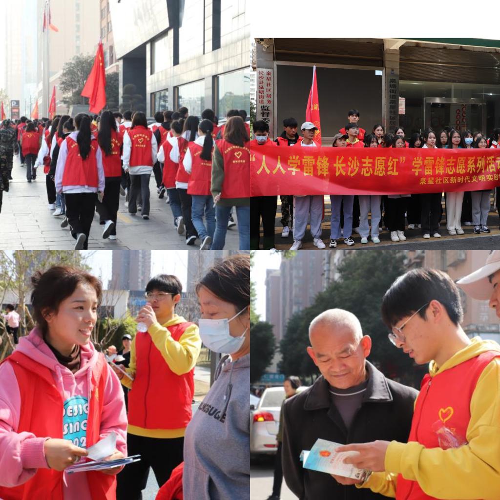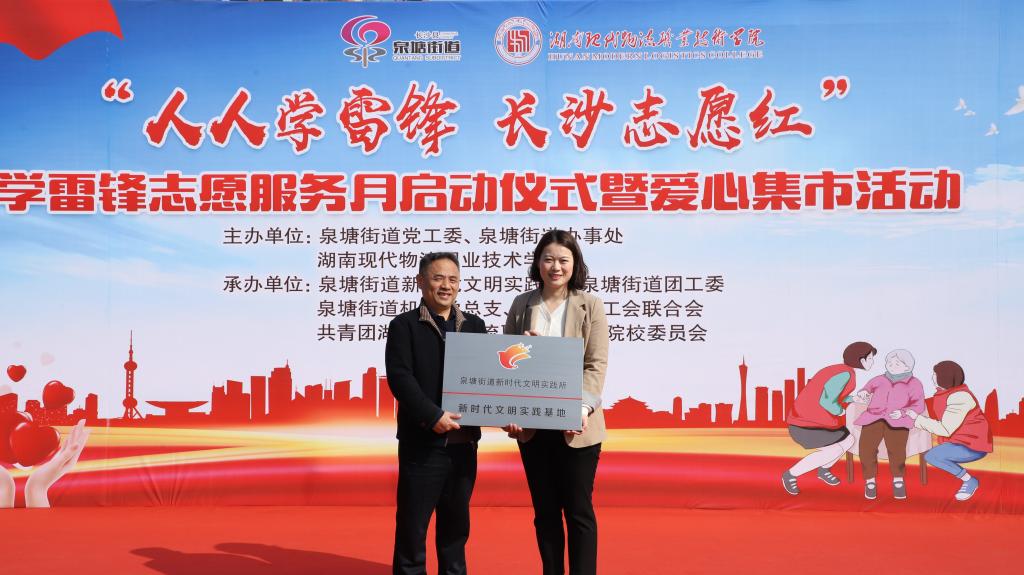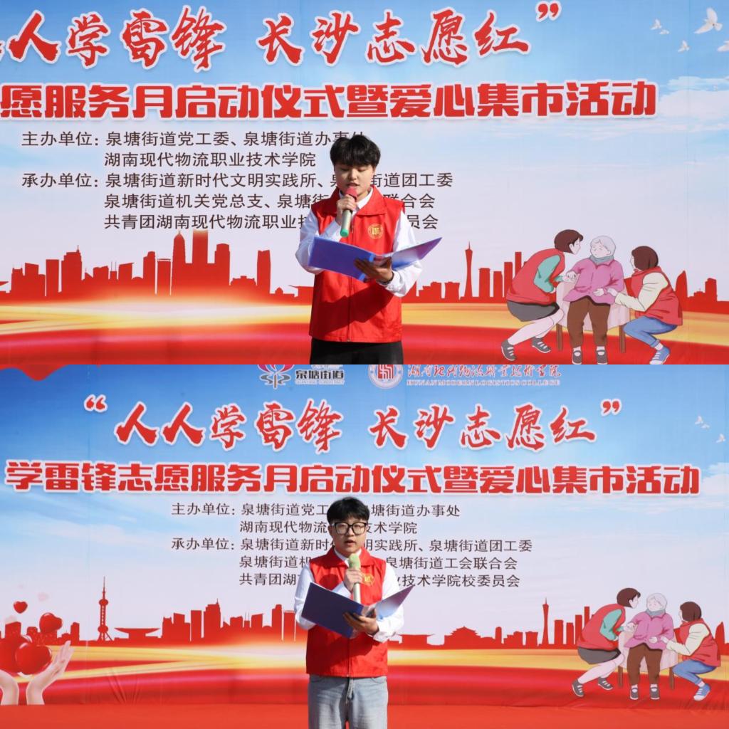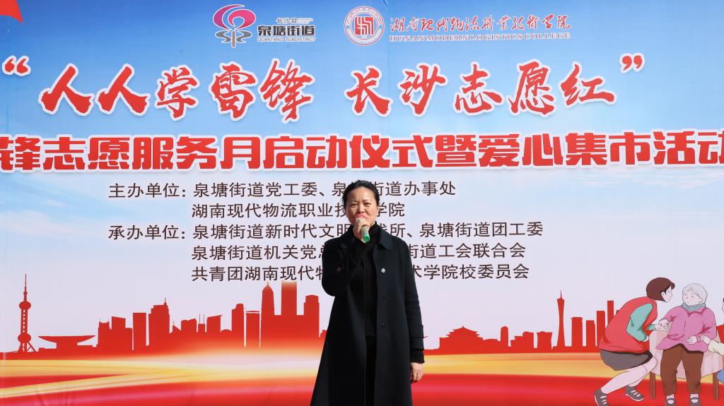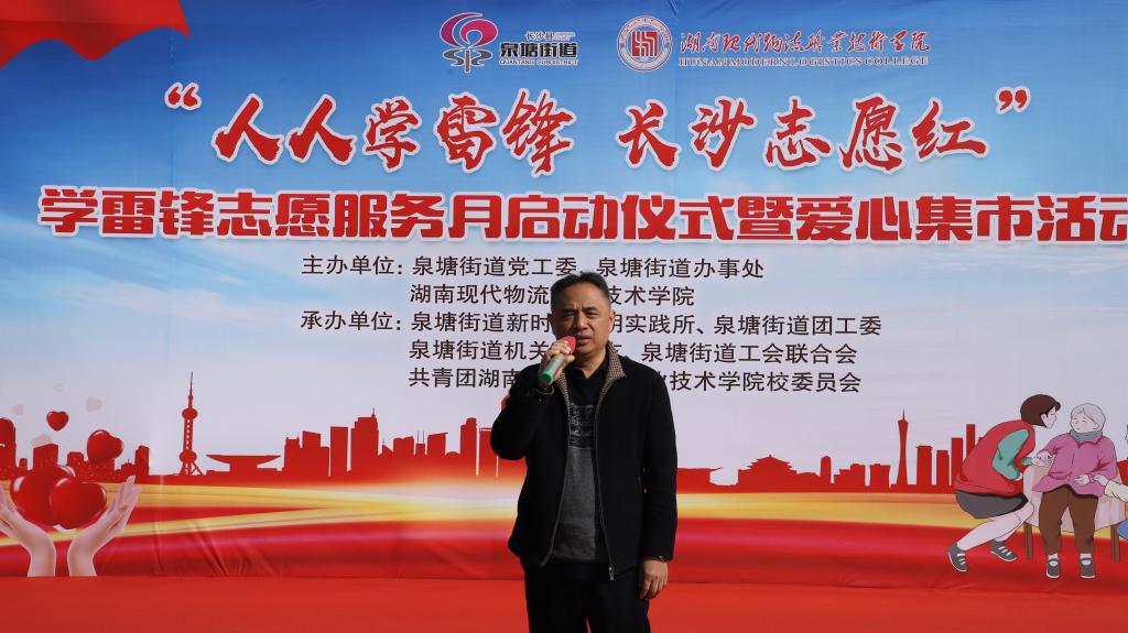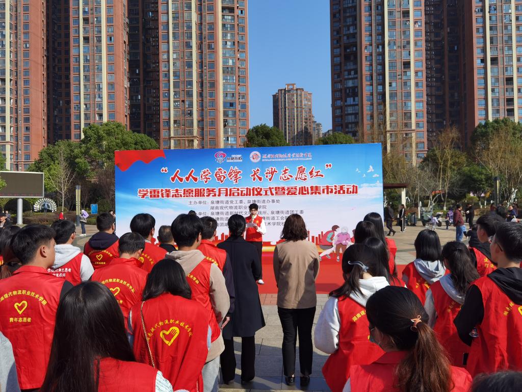 3月5日上午9:30,为纪念毛泽东等老一辈无产阶级革命家为雷锋题词发表60周年纪念日,我校与泉塘街道共同主办的“人人学雷锋 长沙志愿红”学雷锋志愿服务活动月启动仪式暨爱心集市活动在泉塘公园正式拉开序幕。校党委委员、副校长严若红,学生工作处、团委等相关部门负责人、我校及社区志愿者代表等共400多人参加。
