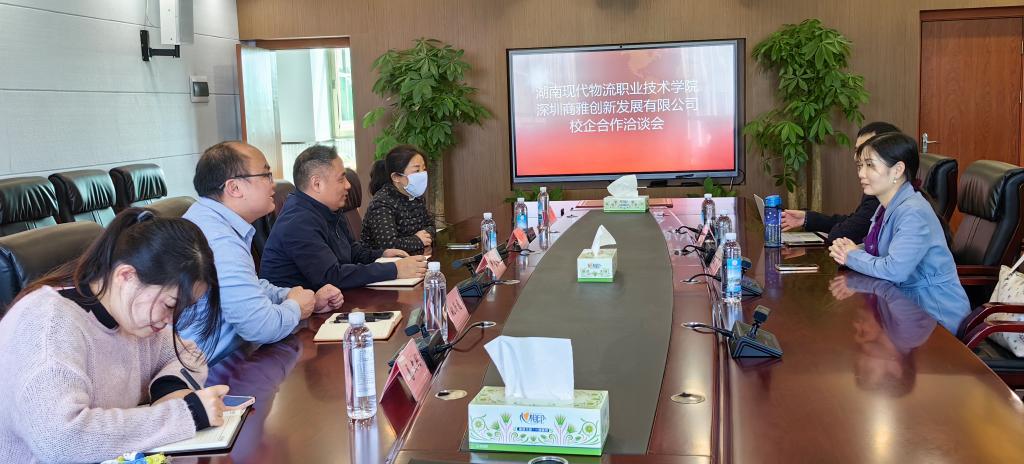4月7日,深圳商雅创新发展有限公司就教育部高校学生司第二期供需对接就业育人项目来我校洽谈合作事宜,学校副校长严若红、校企合作处处长刘淑一、物流人文艺术学院副院长姚济国参加会议。