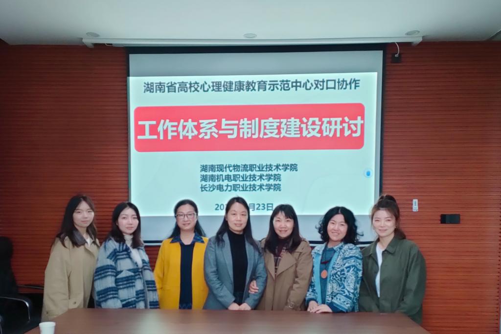 4月23日,湖南省高校心理健康教育示范中心对口协作项目系列活动在我校举行。湖南机电职业技术学院、长沙电力职业技术学院与我校心理健康教育中心老师齐聚一堂,在我校开展了系列研讨活动。我校学生工作处处长赵建军,湖南机电职业技术学院学工部副部长、心理中心主任宋利敏,长沙电力职业技术学院心理中心主任刘洪燕出席会议。会议由我校学生工作处副处长、心理中心主任唐志红主持。