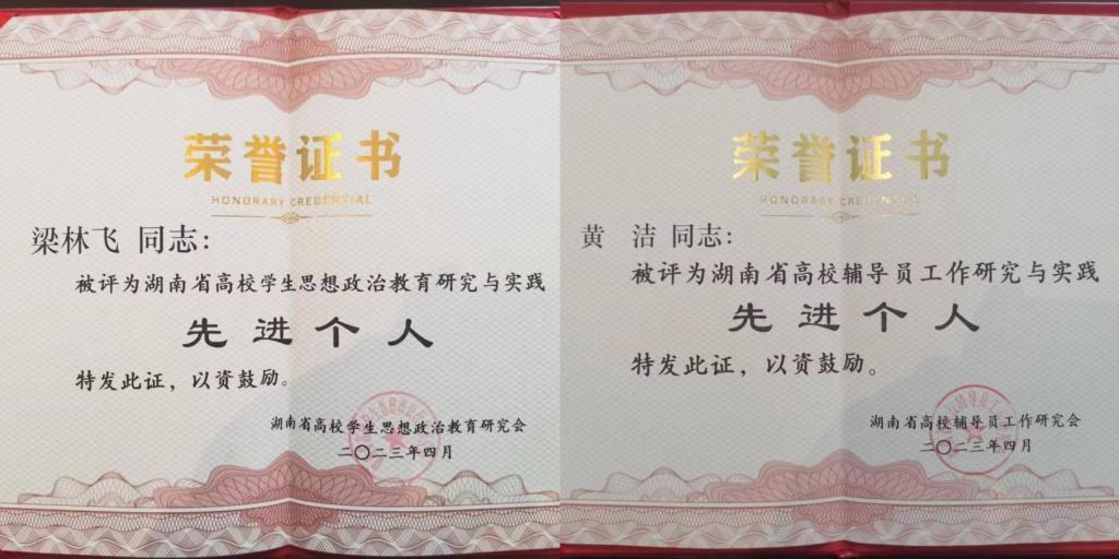 4月25日,湖南省高校思想政治教育研究会辅导员工作专业委员会和学生工作专业委员会2022年年会在湖南工学院举行。会上,对2022年湖南省学生思想政治教育研究与实践、高校辅导员工作研究与实践先进单位、先进个人等进行了表彰。我校荣获湖南省高校辅导员工作研究与实践先进单位;梁林飞老师荣获湖南省高校学生思想政治教育研究与实践“先进个人”,黄洁老师荣获湖南省高校辅导员工作研究与实践“先进个人”。