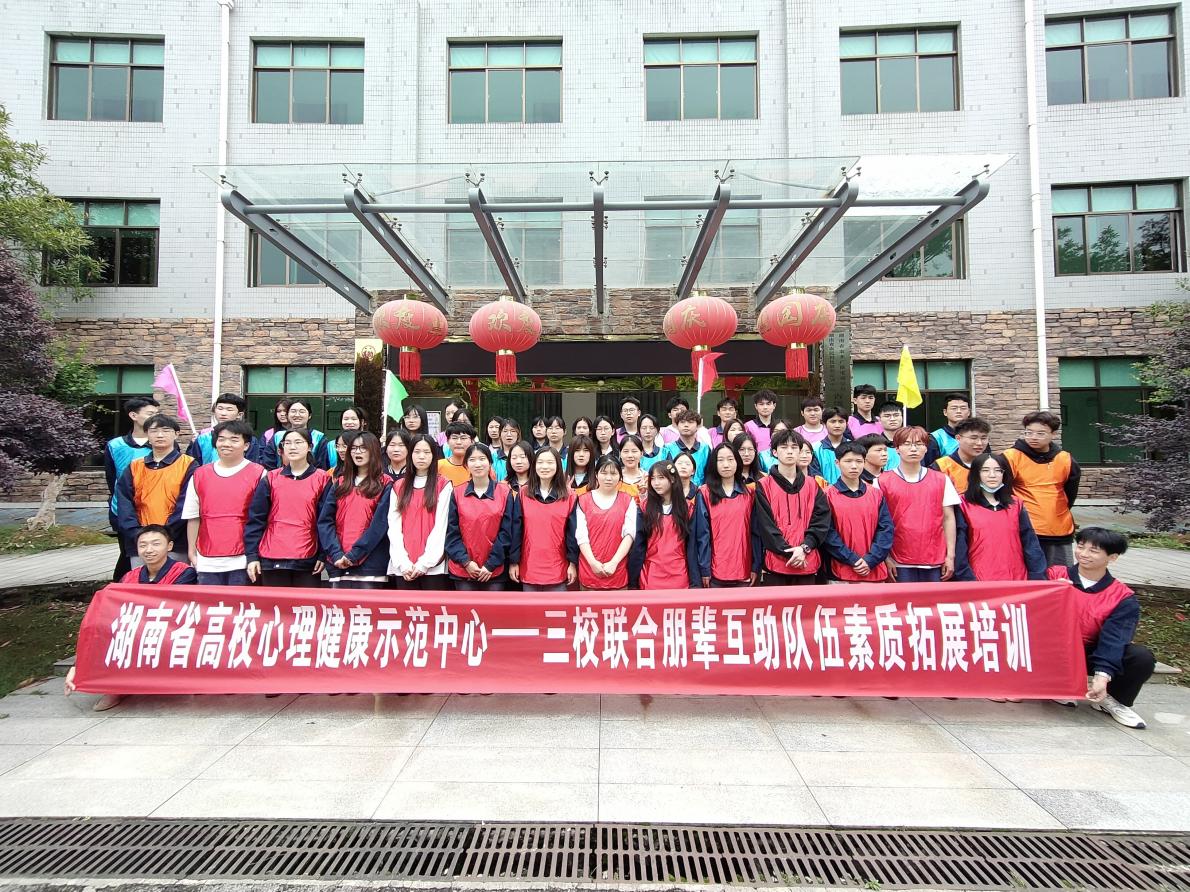 为进一步加强三校大学生心理健康教育工作,建设一支具有较高水平的心理自助与助人能力的朋辈心理互助队伍,促进三校同学之间的相互交流,2023年5月7日,长沙电力职业技术学院心理中心组织长沙电力职业技术学院、必赢76net线路和湖南机电职业技术学院三校共有60余名朋辈心理互助员在华穗生态农庄开展了为期一天的联合朋辈互助队伍素质拓展培训活动。