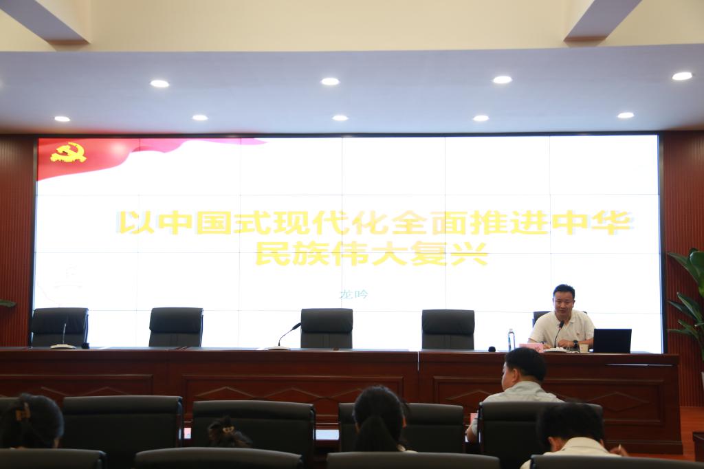 开班仪式结束后,龙吟同志作题为“以中国式现代化全面推进中华民族伟大复兴”的专题党课。龙书记以中国式现代化为切入点,从“接续奋斗,追求千年梦想”“立足国情,开辟全新道路”“凝心聚力,推进复兴伟业”三个方面着手,通过大量案例和生动讲解,阐释了如何以中国式现代化全面推进中华民族伟大复兴。“龙书记的讲解让我进一步了解了中国式现代化的含义,也认识到了我们青年人的使命担当,我们应积极地参加到各种于学校、于社会有益的活动中去,不断学习新知识,关注社会问题,成为一个担当民族复兴大任的时代新人。”“龙吟书记说道,中国强大有一个很重要的原因是中国共产党“能”!中国共产党具有无比坚强的领导力,党的领导直接关系中国式现代化的根本方向。我们作为党员发展对象、新时代的生力军,应坚定理想信念,紧跟党的步伐,牢记共产党人的初心使命,为早日实现中华民族伟大复兴矢志奋斗!”培训班学员肖语欣、邓逢良如是说。