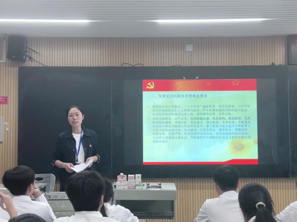 2024年6月3日中午12:40,物流信息学院分党校在教学楼111举行2024上半年入党积极分子培训班第二课,课程主题是“发展党员的程序和手续”。本次党课由物流信息学院党总支专职副书记钟淼主讲。